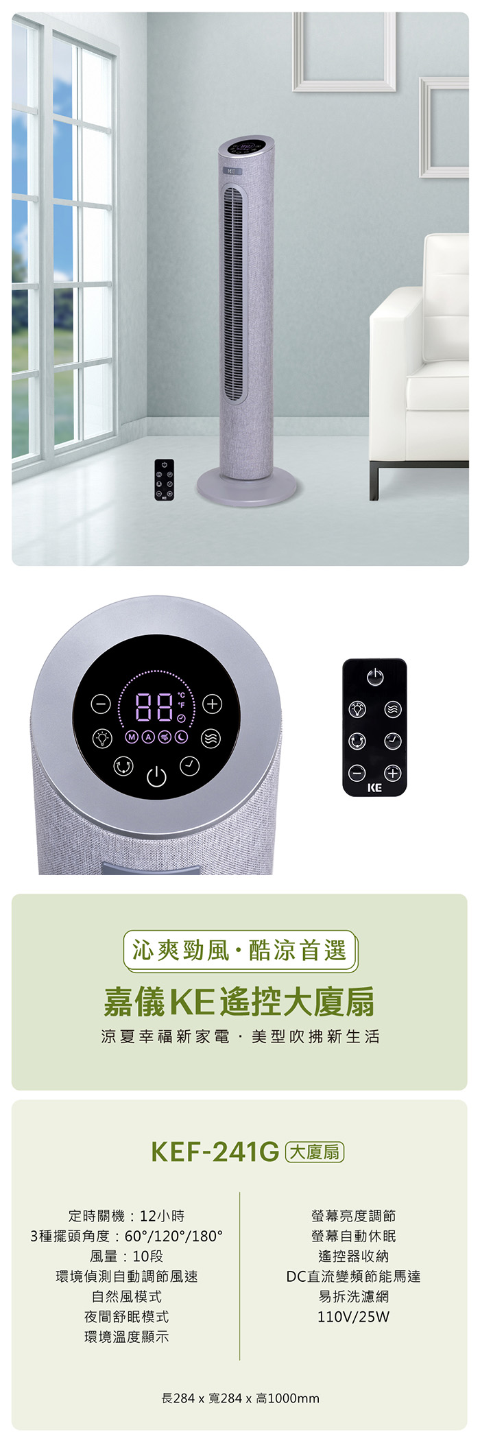 【KE 嘉儀】KEF-241G 時尚灰 / KEF-241B 時尚藍 直流變頻大廈扇 KEF-241