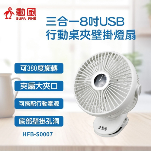 【勳風】8吋桌夾壁掛三用扇 HFB-S0007 行動風扇 小風扇 可USB 可行動電源 露營車 嬰兒車 車內 桌扇 夾扇