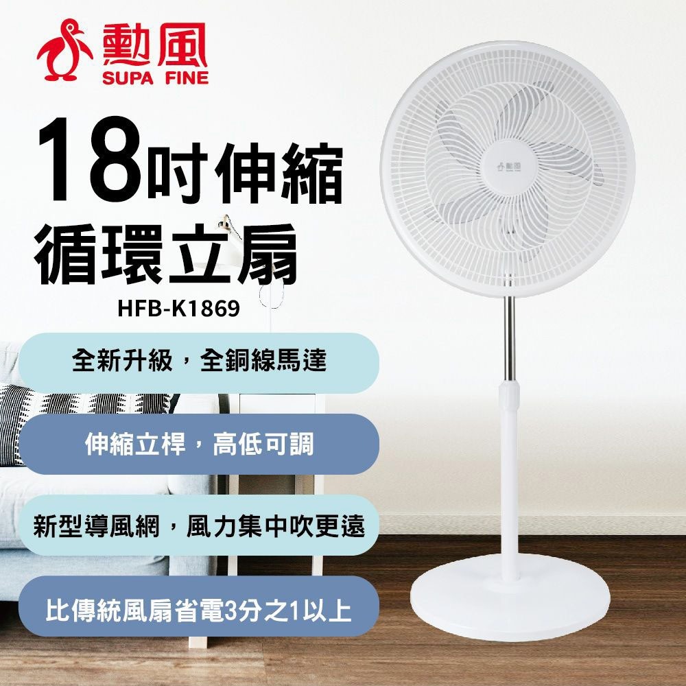 【勳風】18吋新型導風循環伸縮立扇 HFB-K1869 大網面 大風量 3段風速調整 搭配冷氣 快速冷房