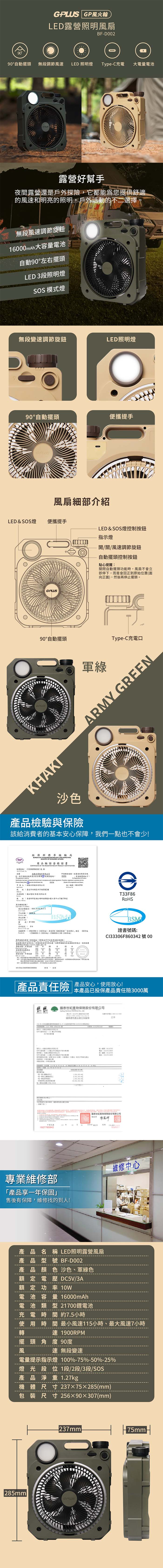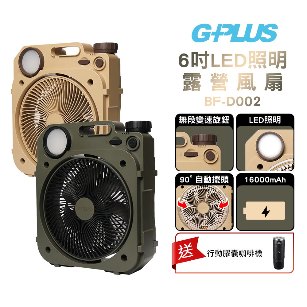 贈行動咖啡機【GPLUS】6吋LED照明露營風扇 BF-D002 軍綠/沙色 無線風扇 充電式風扇
