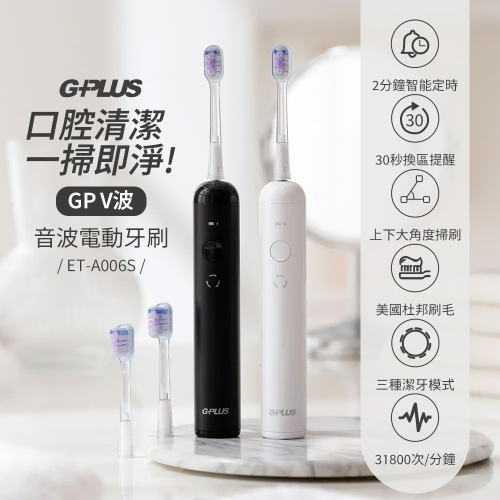 【GPLUS】音波電動牙刷 (GP V波) ET-A006S 黑色/白色