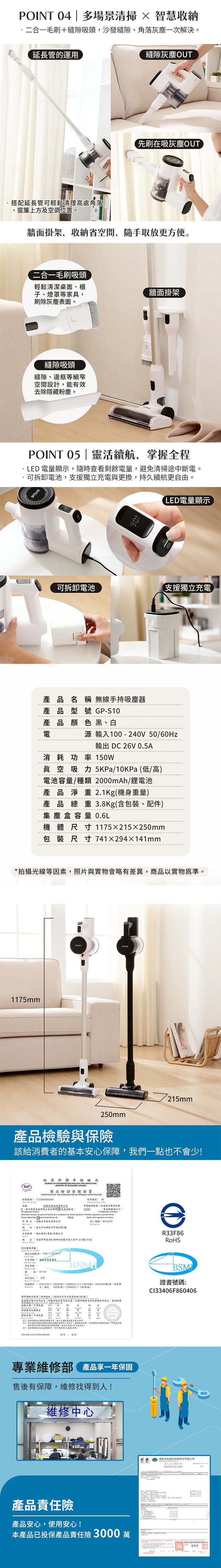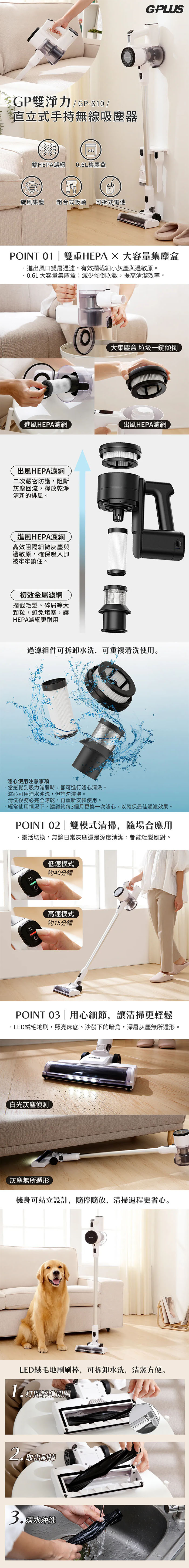 【GPLUS】GP雙淨力 直立式手持無線吸塵器 GP-S10 黑/白 無線吸塵器 | 直立式吸塵器 | 手持吸塵器
