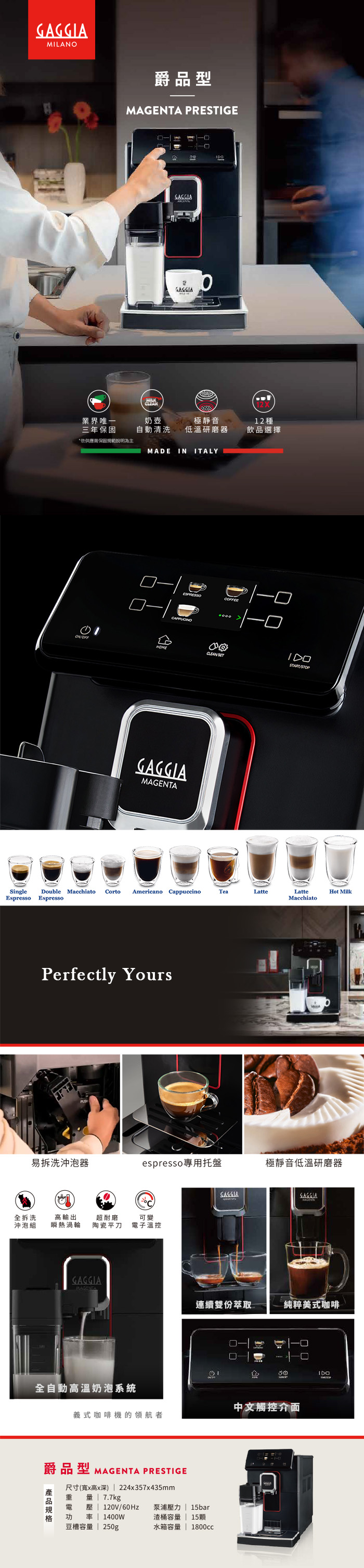 【GAGGIA 咖吉雅】MAGENTA PRESTIGE 爵品型全自動義式咖啡機 原廠三年保固