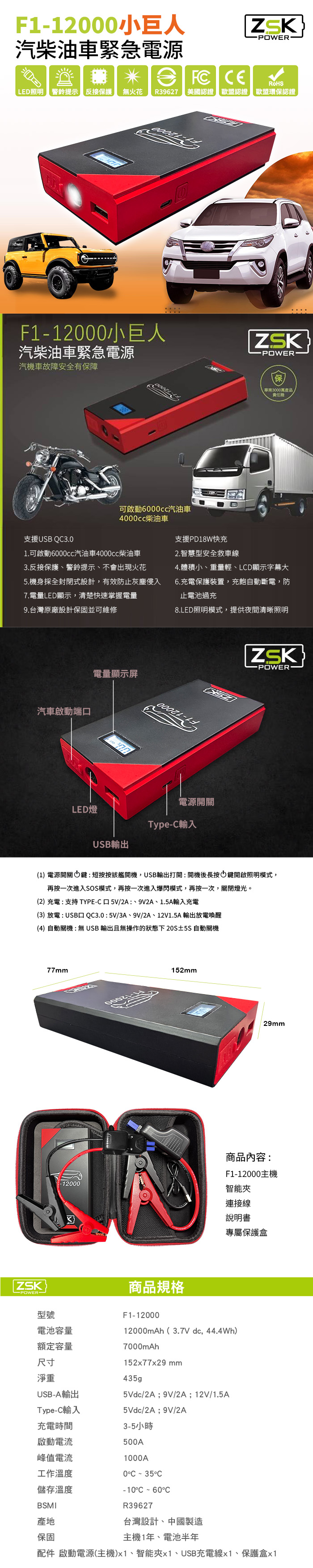 ZSK 汽柴油車緊急電源 救車電源 F1-12000
