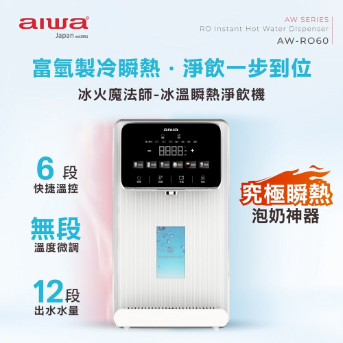 【AIWA 愛華】冰火魔法師 逆滲透冰溫瞬熱淨飲機 AW-RO60 淨飲機 氣泡富氫水 2年保固