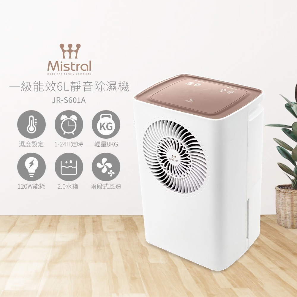 【美寧 Mistral】一級能效6L靜音除濕機 JR-S601A 可申請退貨物稅500元 萬象輪 可定時 可設定濕度