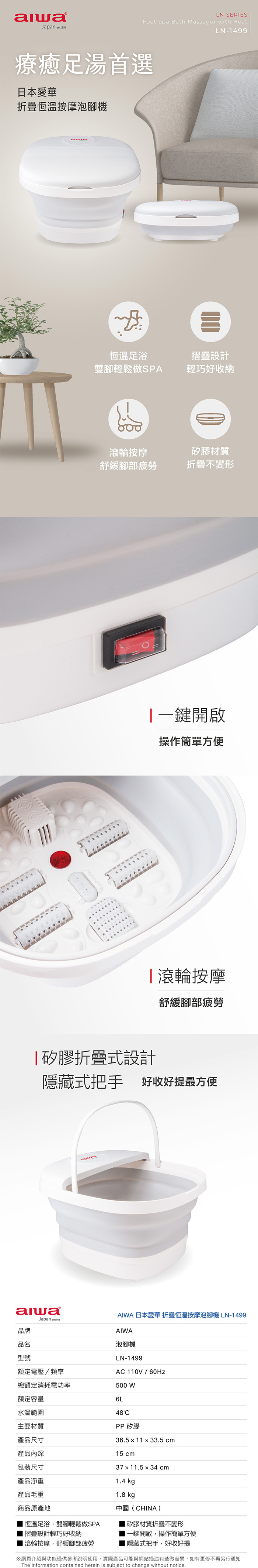 【AIWA 愛華】折疊恆溫按摩泡腳機 LN-1499 摺疊設計 | 泡腳機 | 恆溫足浴