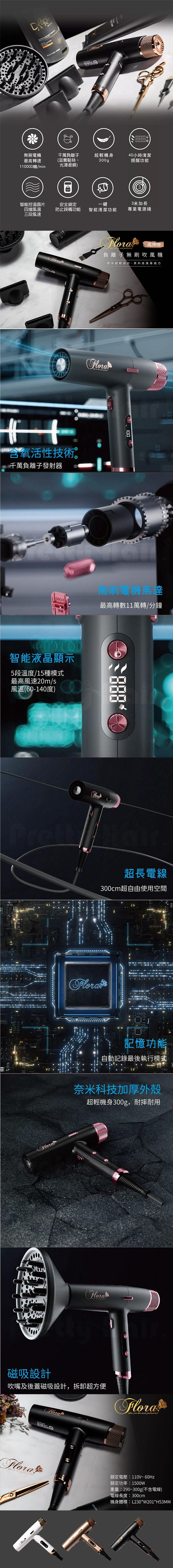 【FLORA 芙蘿拉】FHD-6804 無刷專業吹風機 磁吸式風罩 負離子 超輕大風