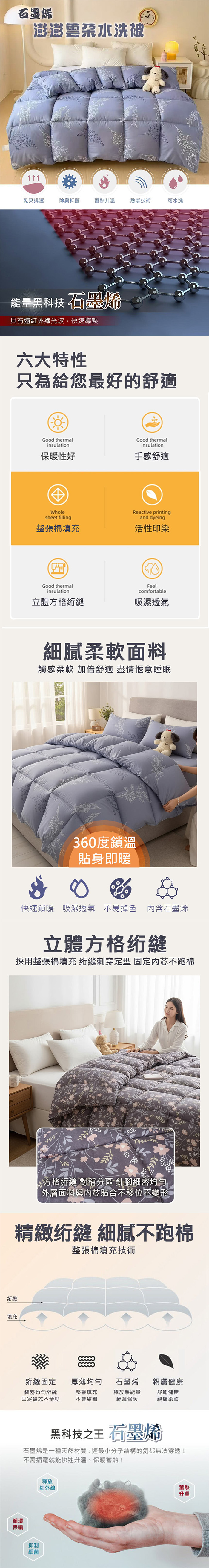 歐洲精品家電 石墨烯澎澎雲朵水洗被 6*7尺 雙人棉被 藍色/紫色 | 發熱保暖被 | 可水洗保暖冬被