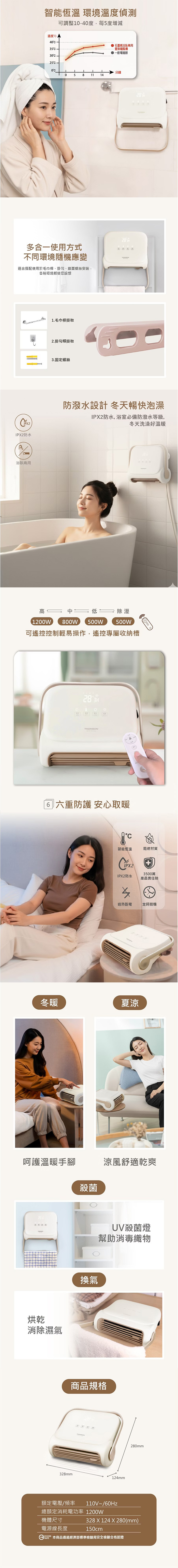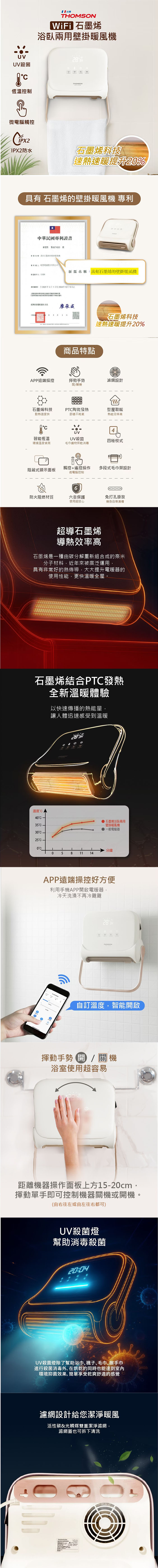 【THOMSON】WIFI石墨烯壁掛暖風機 TM-SAW35FW 奶茶白 浴室 除溼 防潑水 烘乾 暖房 暖衣