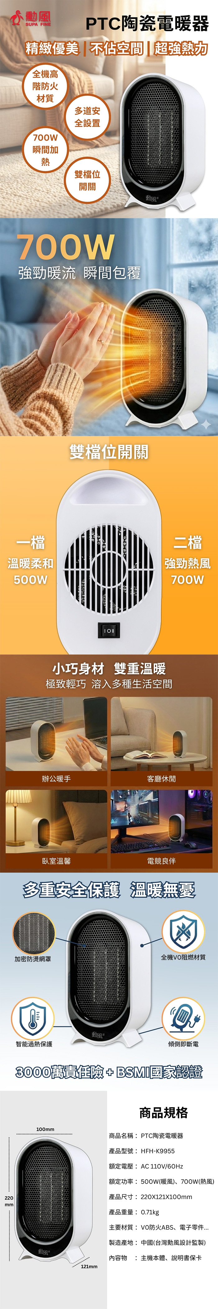 【勳風】美型PTC陶瓷電暖器 HFH-K9955 電暖器 陶瓷電暖器 暖風機 桌面暖風機 電暖爐 防傾倒 美型電暖器