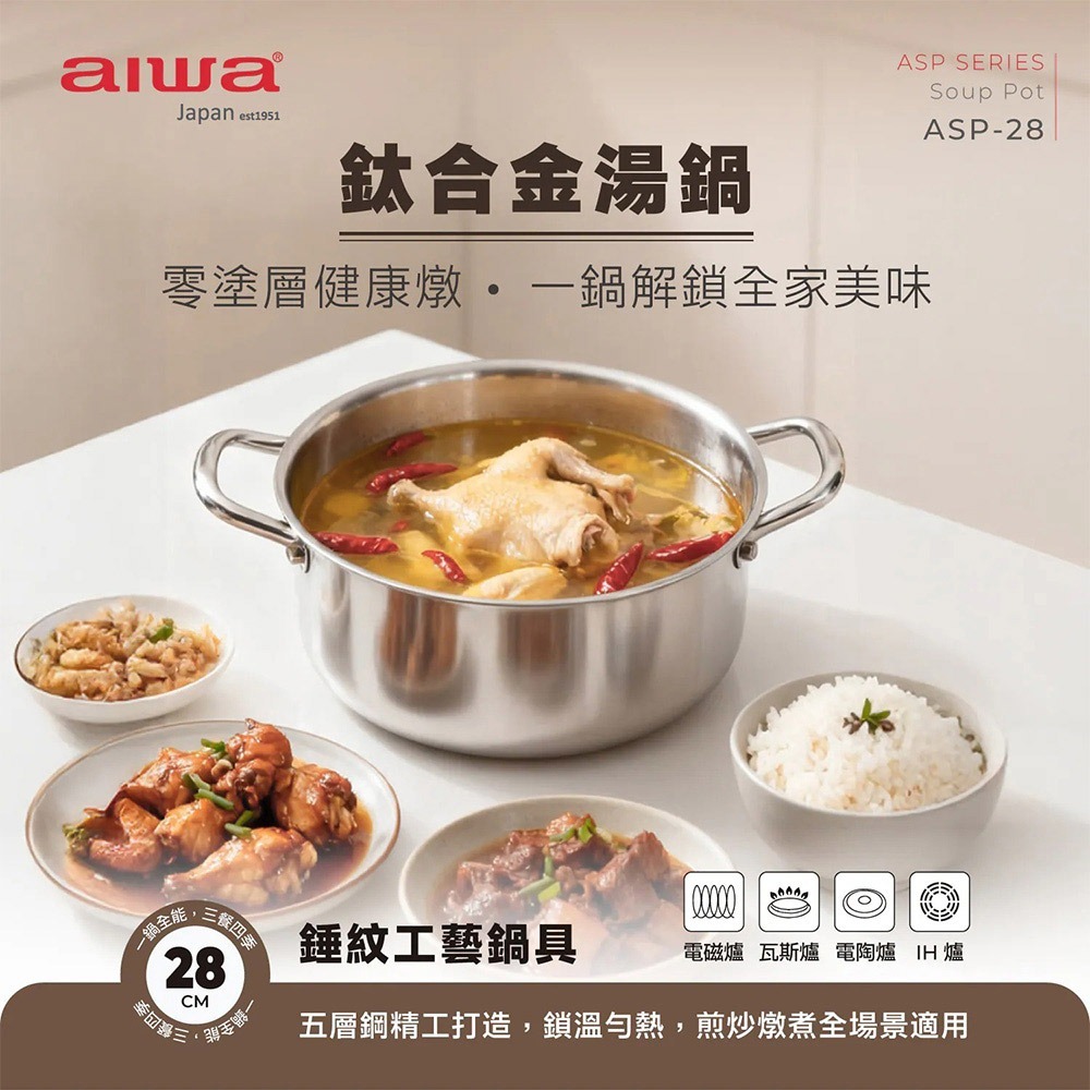 【AIWA 愛華】28cm 鈦合金湯鍋 ASP-28 燉鍋 | 火鍋 | 煮麵鍋 | 料理鍋 | 雙耳湯鍋 | 不挑鍋
