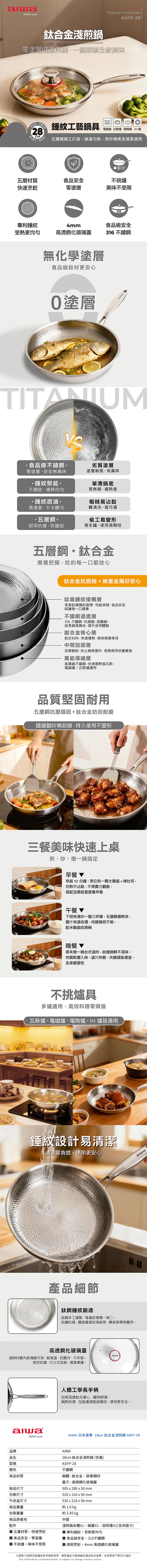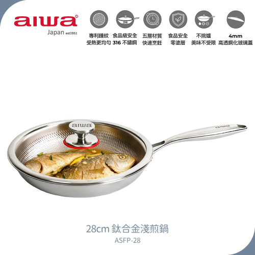 【AIWA 愛華】28cm 鈦合金淺煎鍋 ASFP-28 含玻璃上蓋 | 平底鍋 | 316不鏽鋼 | 不挑爐 炒鍋