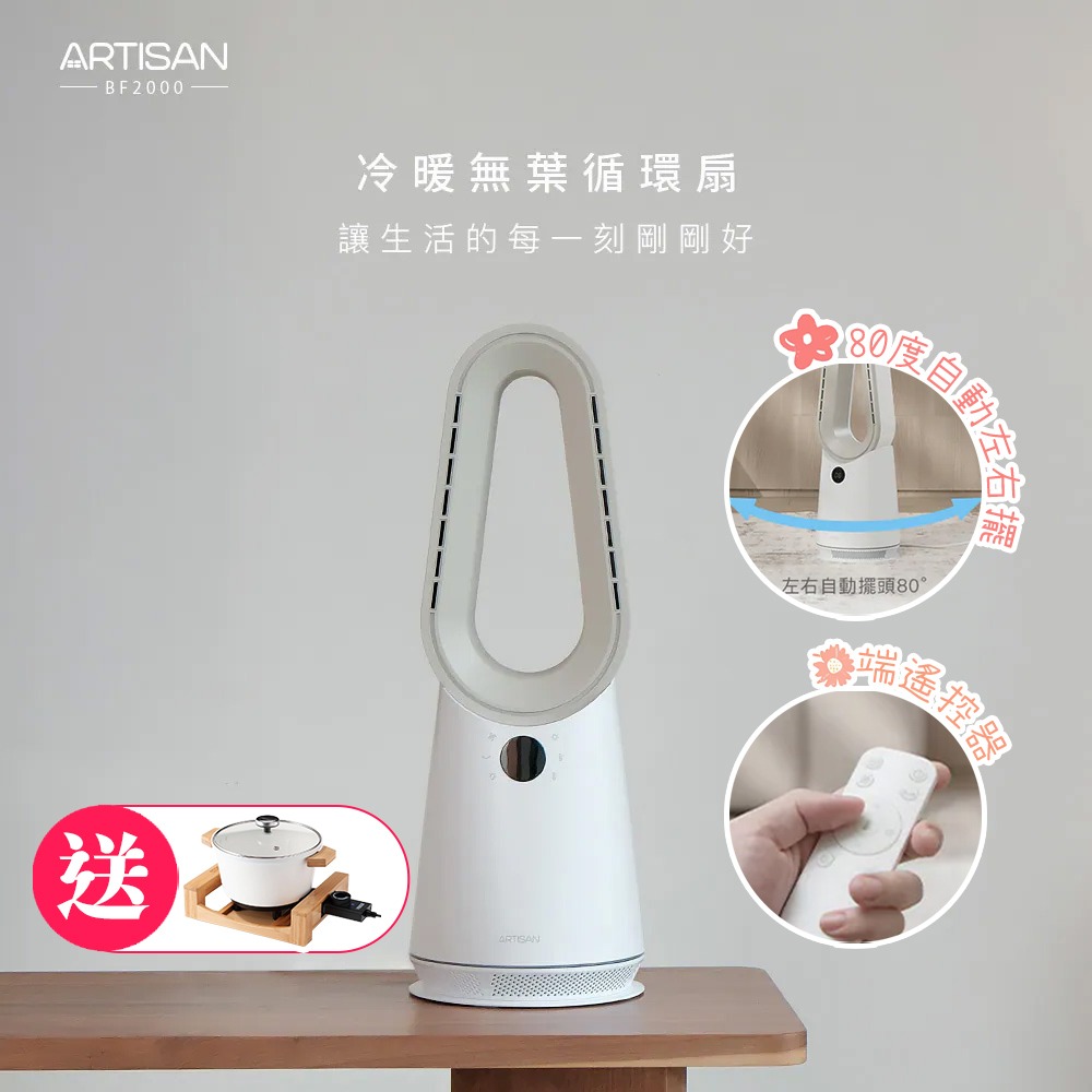現貨【ARTISAN 奧堤森】冷暖無葉循環扇 玄米白 BF2000 買再送陶瓷料理鍋 無葉扇 | 電暖氣 | 循環扇