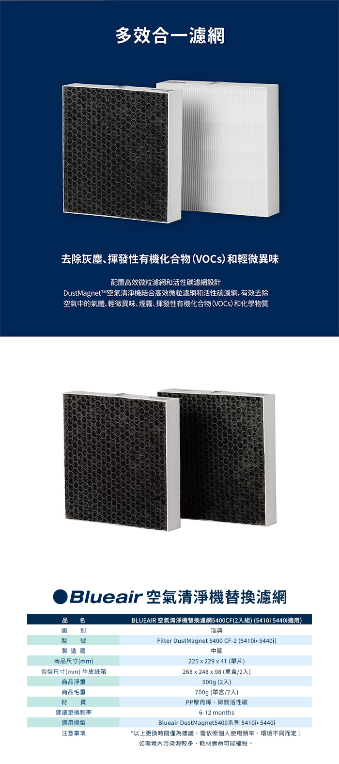 【Blueair】空氣清淨機替換濾網 5400CF(2入組) (5410i 5440i 空氣清淨機適用)