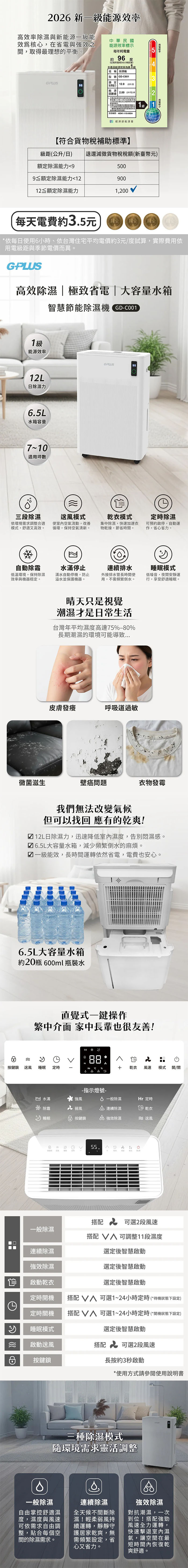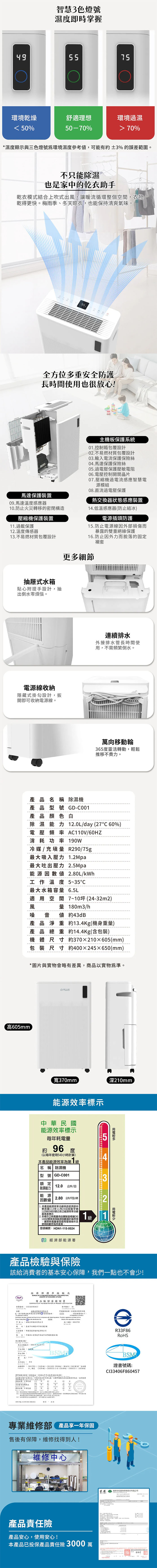 【G-PLUS】12L 智慧節能除濕機 GD-C001 一級能效可申請退貨物稅1200元 GPLUS | 除濕機