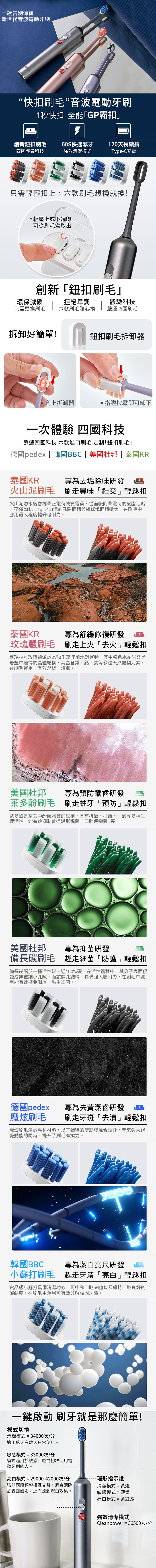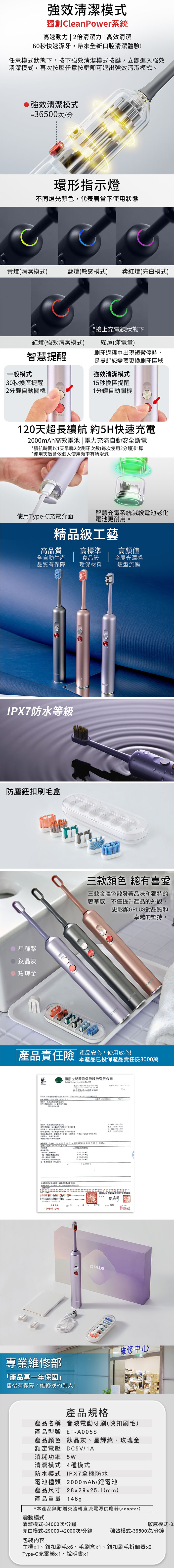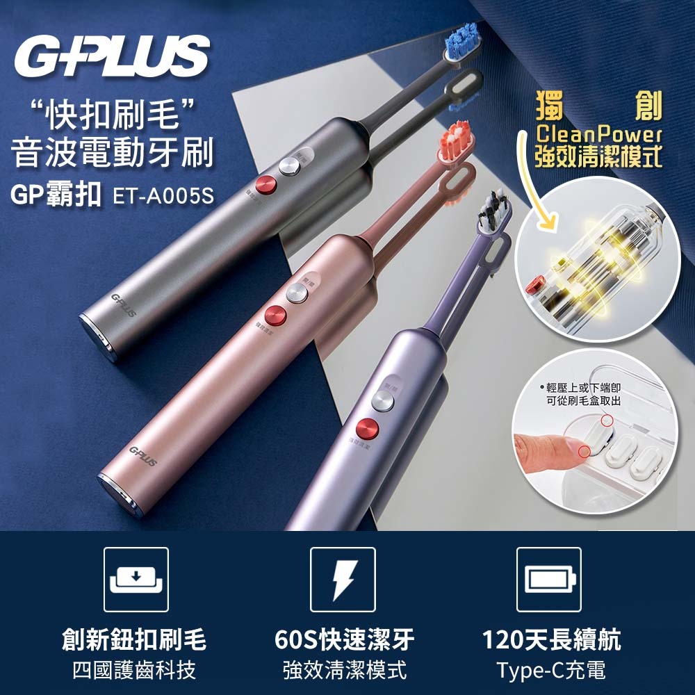 【G-PLUS】GP霸扣 快扣刷毛音波電動牙刷 ET-A005S (內附刷毛一盒) 鈦金灰/星輝紫/玫瑰金 GPLUS