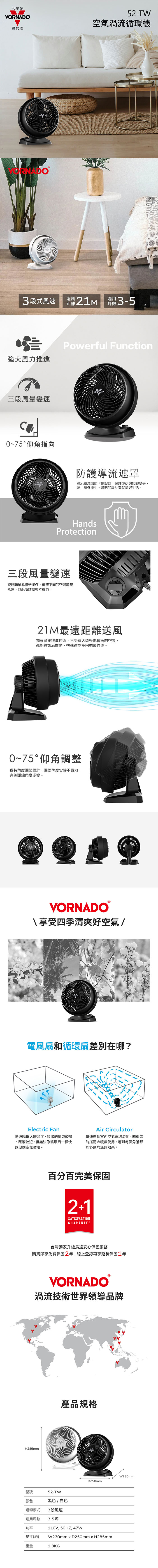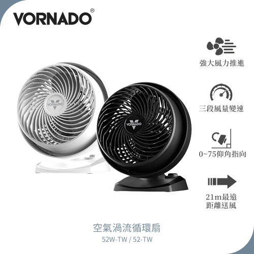 【VORNADO 沃拿多】52-TW 黑色/白色 渦流空氣循環扇《適用3-5坪》官方原廠保固