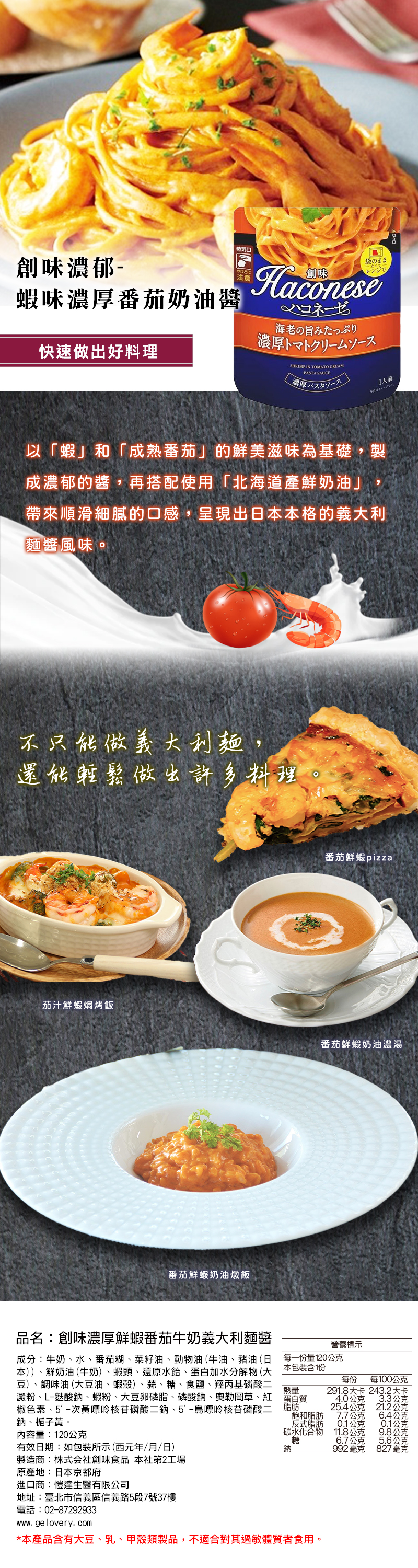 帶來順滑細膩的口感,呈現出日本本格的義大利麵醬風味