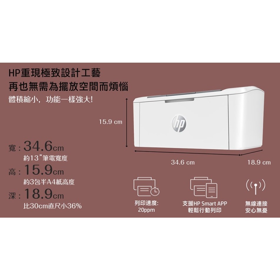 HP LaserJet Pro M111w 黑白雷射印表機是同級最小體積黑白雷射印表機,三合一碳粉匣節省維護時間,黑白雷射印表機瞬間啟動無須待暖機享受快速列印,而且能配合您的空間與預算。創造專業品質的列印成果,從智慧型手機進行列印與掃描。