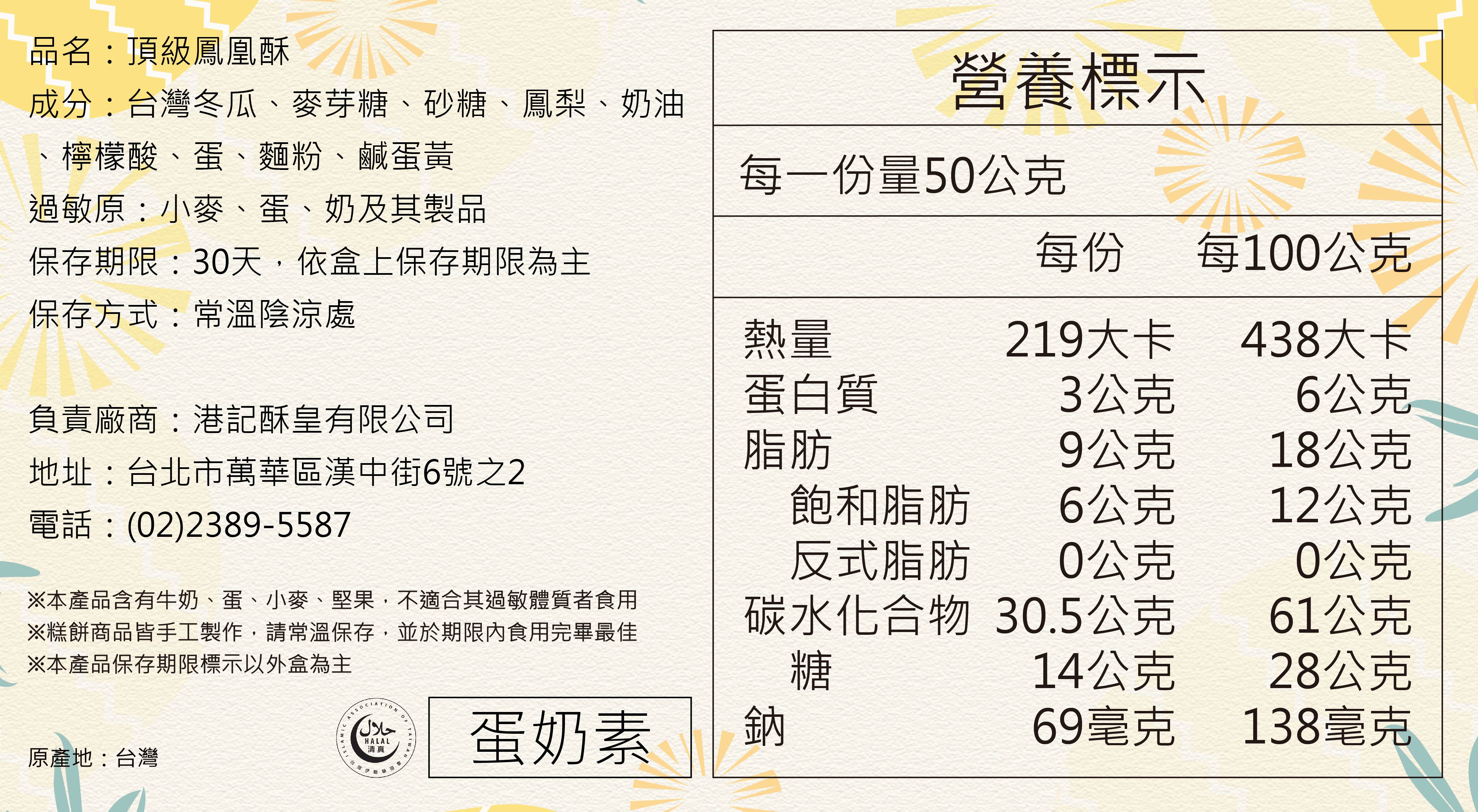 【商品主要成份】進口奶油、台灣冬瓜、鳳梨、雞蛋、糖、麵粉、鹹蛋黃。