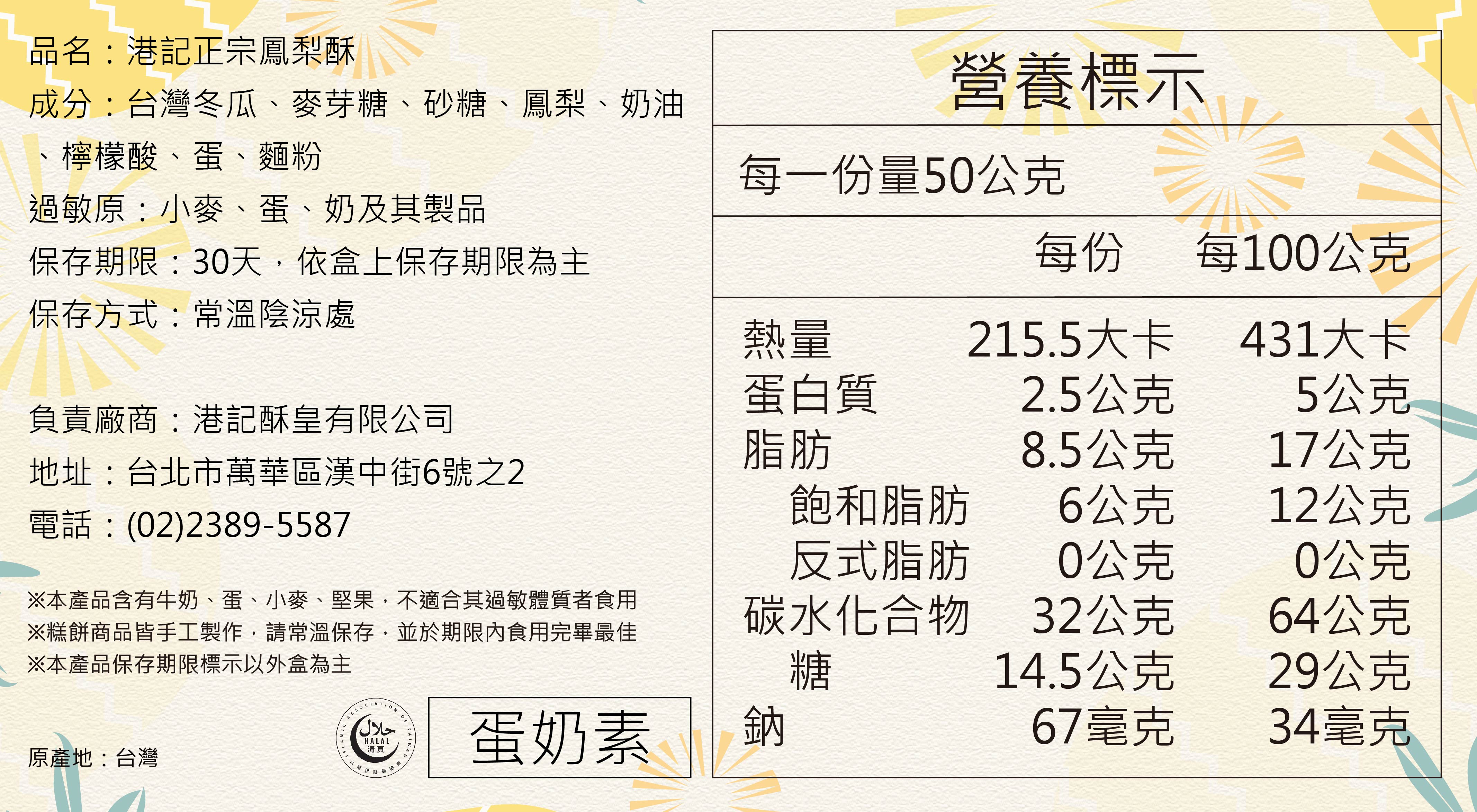 【商品主要成份】進口奶油、台灣冬瓜、鳳梨、雞蛋、糖、麵粉。