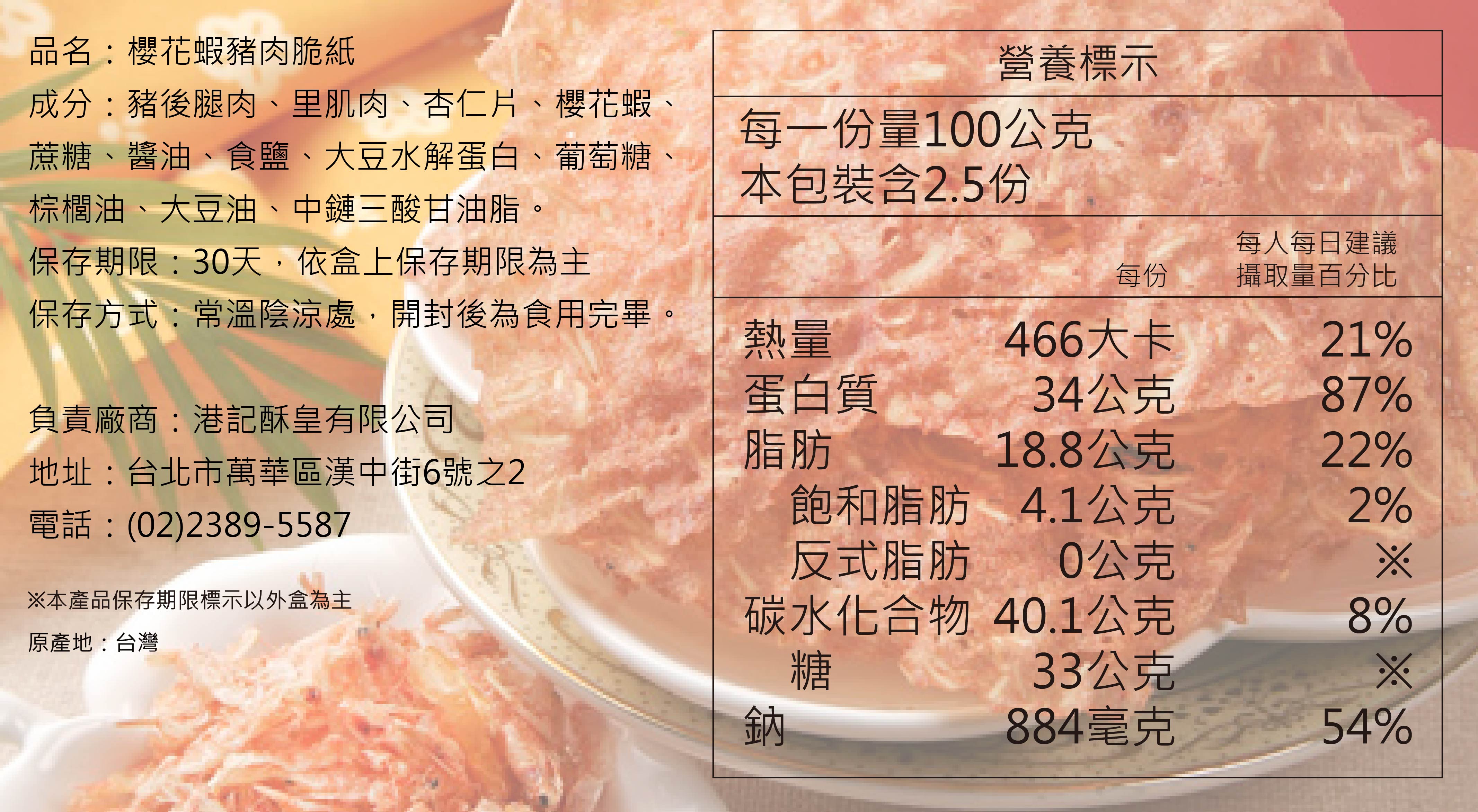 【港記酥皇】鹹食肉乾|頂級櫻花蝦豬肉脆紙禮盒