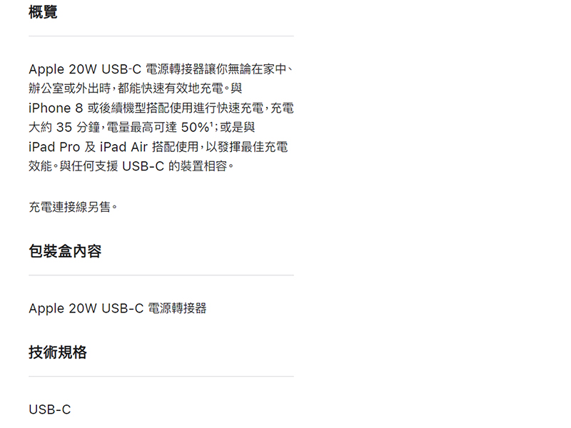 Apple 蘋果 原廠 USB-C 20W 電源轉接器-一年保固/原廠盒裝