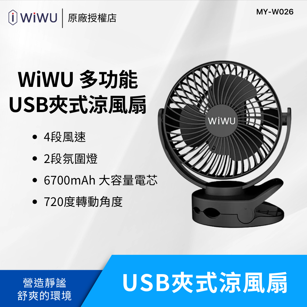- WiWU 多功能USB夾式涼風扇 二代4段風力 2段氛圍燈 720度轉動角度吊掛 桌立 夾式 三種模式 隨心所欲可拆卸前網 輕鬆清潔靜音舒適 低分貝無噪音