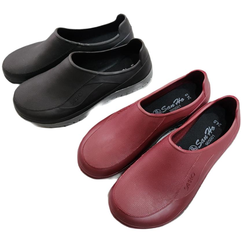 三和牌162女防水工作鞋、雨鞋、廚師鞋(暗紅/黑) ,附鞋墊