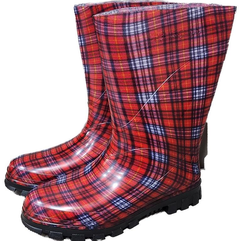 商品名稱:【日日新】189女用雨鞋 產地:台灣 顏色:紅格 ◆尺碼: 9(22) 9.5(23) 10(24) 10.5(25) ◆材質:PVC塑膠.內襯高級針織棉 ◆鞋跟: 高約3公分 ◆筒圍約 39.5~ 42 cm ,筒長:24公分 ◆內附抗菌竹炭鞋墊 ◆強韌、耐寒、耐油、耐磨、不易龜裂 ◆內襯為高級針織布 ◆合成橡膠止滑鞋底 ◆台灣製造,品質優良 ◆登山,健行,餐廳工作者、市場、水中工作者、園藝工作者、機車騎士必備