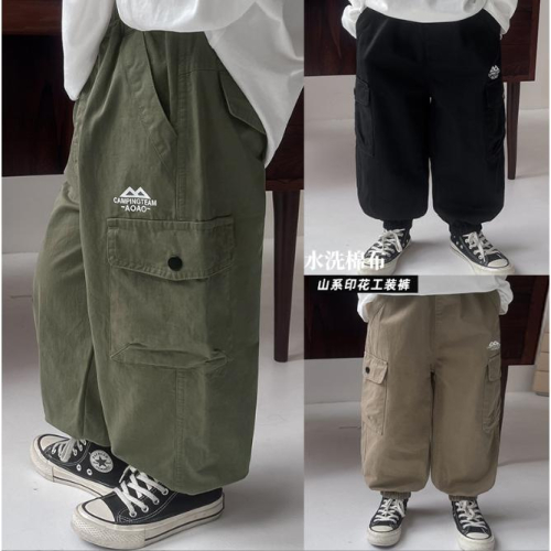 山系印花束口工裝褲 長褲 縮口 戶外 登山 寬鬆 男生 男童 工裝褲