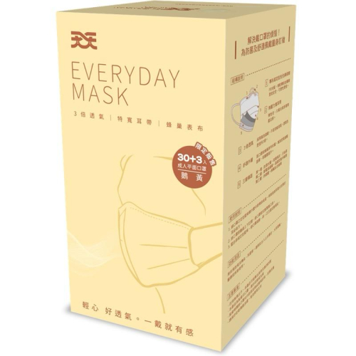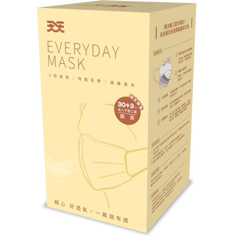 台灣康匠 天天醫療口罩 大人鵝黃色30+3入成人平面口罩 限定販售