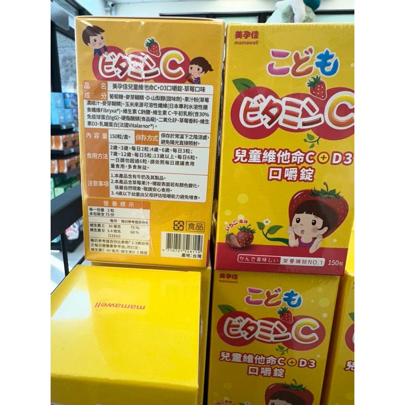 美孕佳兒童維他命C+D3口嚼錠 草莓口味150粒/盒(有贈品)【S.SHOP】