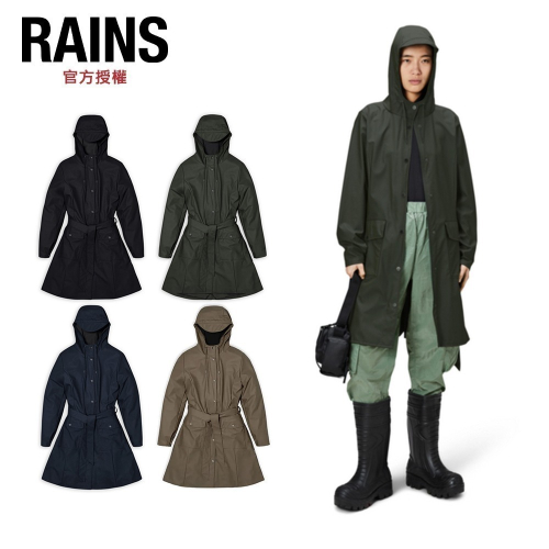 Curve W Jacket是Rains對女士風衣的詮釋,極簡風格中擁有修身的輪廓、A字型曲線和腰帶。配有束繩風帽、可調節式袖口、拉鍊與按扣的開襟、魚尾下擺設計和前方兩個按扣口袋。