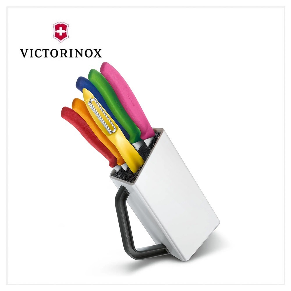 這款小型多用途刀座曾榮獲 2014 年廚房創意大獎,小小體積、大大不同。你可以像個專家一樣在廚房內游刃有餘,而巧妙的色碼標記系統,可讓你輕鬆分辨不同刀具功能。有著現代化設計和一流的功能性,Swiss Classic 多用途刀座組合就是瑞士刀款的經典。