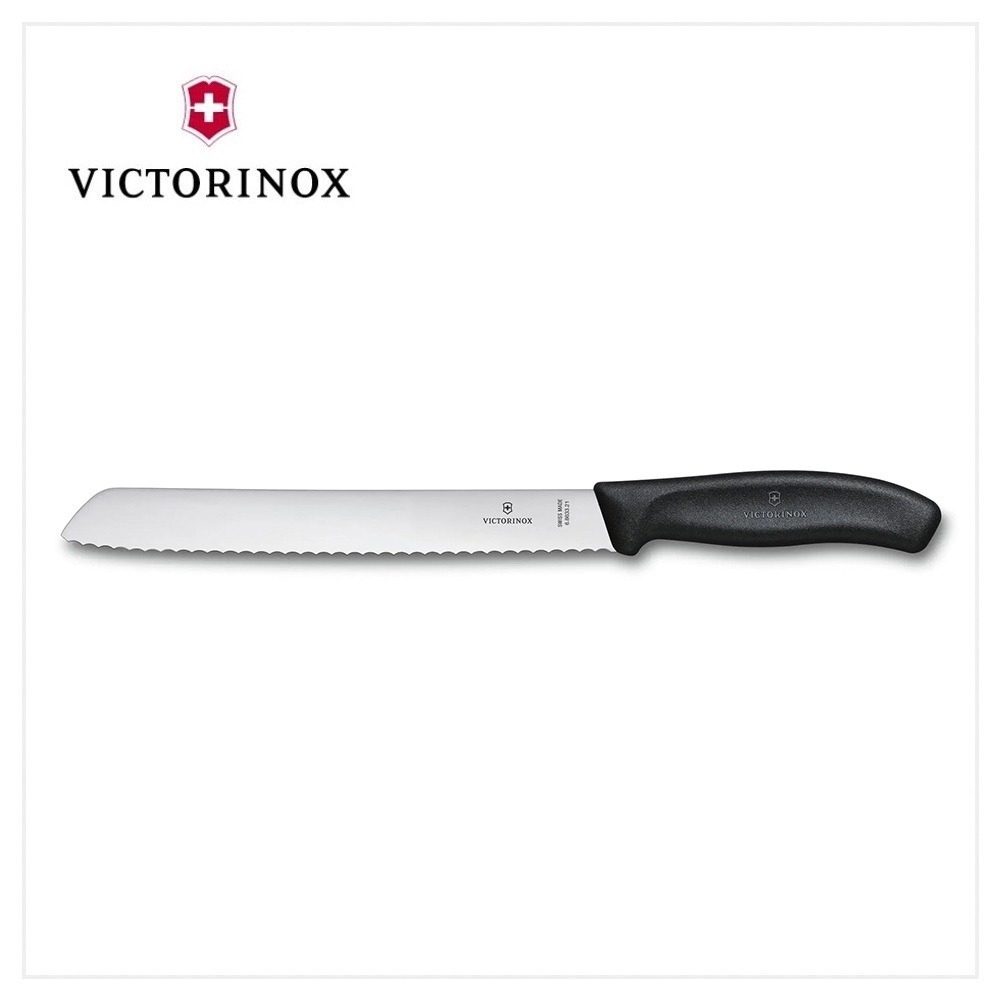 配以波浪形刀刃及人體工學手柄的麵包刀