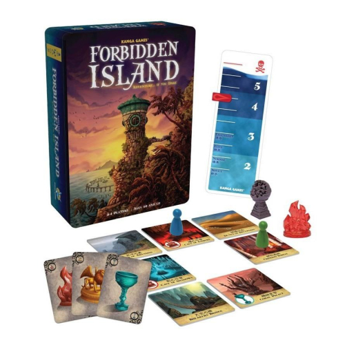 Adventure...If You Dare! 探索禁忌之島!加入一群大膽探險家的孤注一擲的任務,從這個危險天堂的廢墟中獲得四個神聖的寶 藏,這座島將一步步向下沉沒,你們這一隊將必須一起合作並迅速地調動,在你陷入萬丈深淵之前,全速向寶藏前進並成功地逃走。這套獨特的遊戲有太多讓我們喜愛的地方:從豐富的插畫、同心協力的本質、創新的遊戲規則,到從卡片以及牌中可創造出的無限可能性。在開始遊戲後,別對你的心跳迅速加速感到意外-這是一個會馬上產生緊張、刺激興奮氛圍的遊戲! 遊戲配件 58 Playing Cards 24 Island Tiles 6 Pawns 4 Treasure Figurines 1 Water Meter 1 Water Level Marker 1 Forbidden Island Variants Sheet Rules of Play 附加信息 適合年紀 10歲以上 遊戲人數 2至4人 遊戲時間 30 分 出版商 Kanga Games 遊戲設計者 Matt Leacock 獲得獎項 否