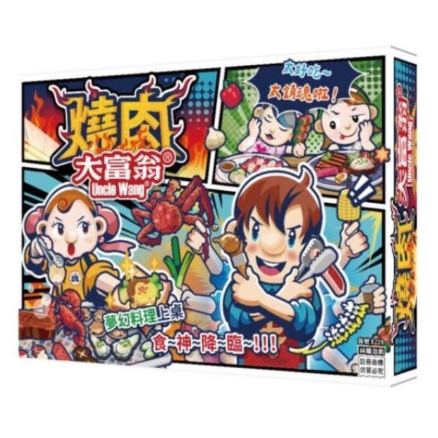 遊戲資訊 遊戲人數:2~4人 遊戲時間:40分鐘 適合年齡:6+ 遊戲簡介 挑戰廚藝巔峰,完成究極燒肉! 歡迎來到燒肉大富翁的料理實境秀,玩家在賽場內收集食材、構思食譜、找到空桌擺上料理,才能透過試吃賺取積分! 玩家要謹慎的組合食材與食譜,用更高級的料理,將對手踢下桌,還可以引發狀況干擾對手,穩住領先優勢。 你會按部就班賺取積分,還是冒險挑戰夢幻料理,一口氣逆轉賽局呢?