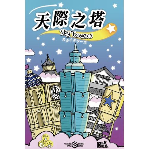 遊戲人數:2~4人 遊戲時間:25分鐘 遊戲年紀:10歲以上 《SkyTower 天際之塔》建造你的夢幻城市?! 🌇成為城市的市長,建造屬於自己的高塔,這座塔有些不一樣,因為也把來自世界各地的地標一同納入城市景觀! 不過,你可不是唯一的建造者,其他競爭者也在打造自己的城市——你有辦法勝出,成為最強市長嗎? 🛕建塔的規則簡單明快卻充滿挑戰性: * 塔的總數不可超過 21。 * 不能將旁邊鄰居塔頂卡片相同數字的卡片建在塔上,沒有人想變成複製品! 完成的塔會依卡片上的風箏數計分,數值較低的卡片通常分數更高。此外,達成特定獎勵還可能獲得額外加分! 🌌遊戲的核心目標是建造塔高精準達 21,卡牌數字從 1 到 10,每張卡片不僅有數字,還附帶各種特殊效果或放置限制,因此遊戲不但具有策略深度而有變化性。 例如:你可以偷取其他玩家的卡片、加速建塔、干擾鄰居的塔、偷看抽牌堆,甚至一次建造複數卡片。 由於卡片效果與鄰居塔頂的限制,每一次建塔都需要仔細規劃、觀察對手動向,需要策略,也要點運氣。除此之外,我們還特別收錄了單人挑戰模式,建築功能有為了單人而特化調整,愜意但不失挑戰! 🎰循序漸進的教學模式,既使是小朋友也能上手,親子同樂!不過,這不代表玩家可以輕視,在團隊模式下,這些效果更能用來與隊友交換卡片,合作打造最佳策略。 遊戲提供多樣化的策略選擇,每場遊戲都充滿新鮮感與驚喜。無論是家庭聚會、朋友同樂,或是休閒輕競技,《天際之塔》都能帶給你無盡樂趣與挑戰!