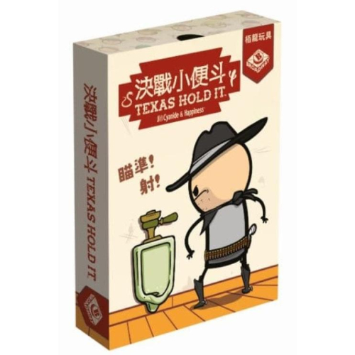 適合年齡:15歲或以上 遊戲人數:2~6人 遊戲時長:約10~15分鐘 【遊戲介紹】 每位玩家從六名牛仔中選擇一名作為自己的角色。 這牛仔就是你了! 玩家要在蠻荒西部的廁所一邊暢快解放,一邊避開那些射不准的牛仔。 好吧!一場新式射擊比賽開始了!