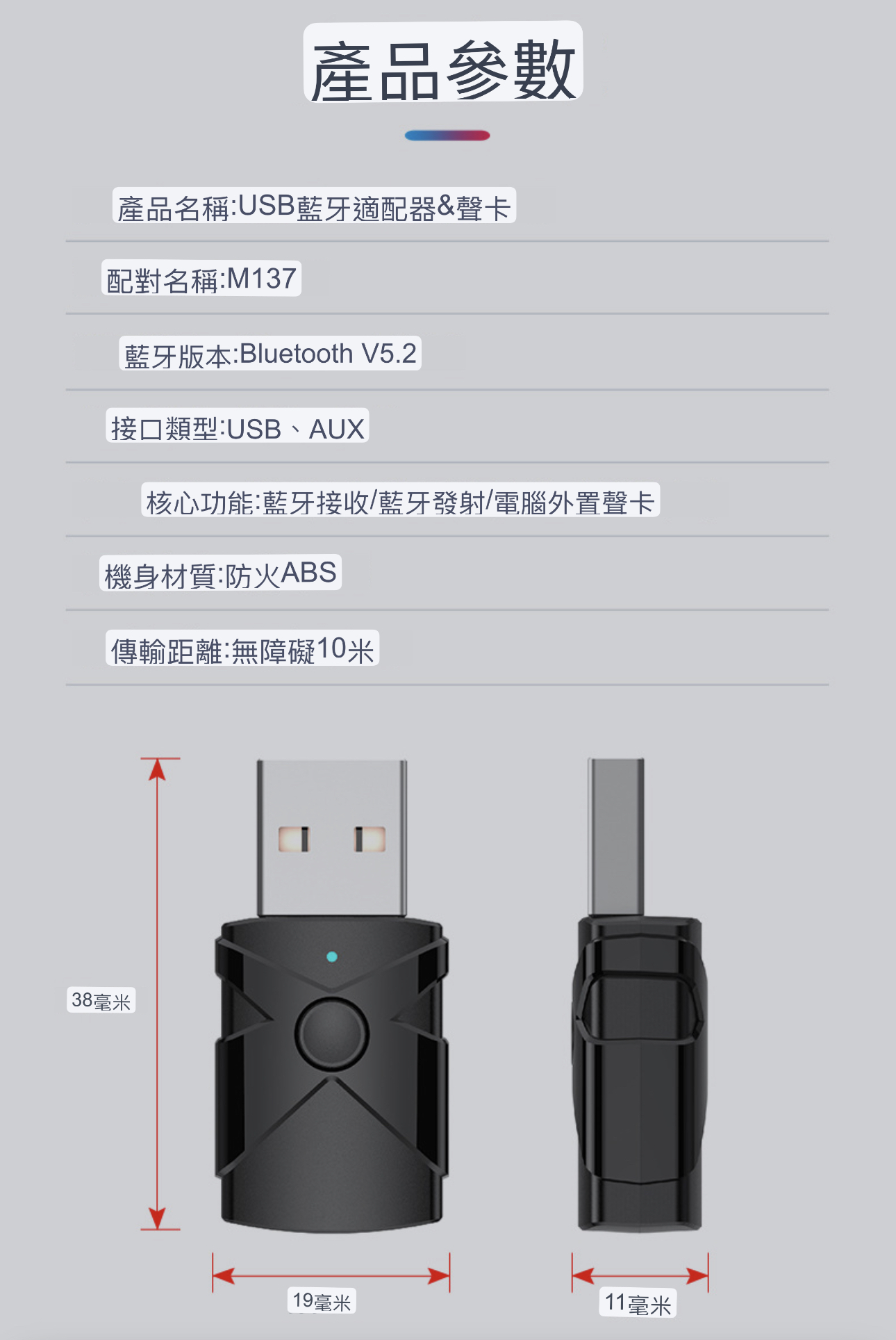 ✨✨✨升級版M137 5合1 藍牙發射器接收器+音效卡✨✨✨