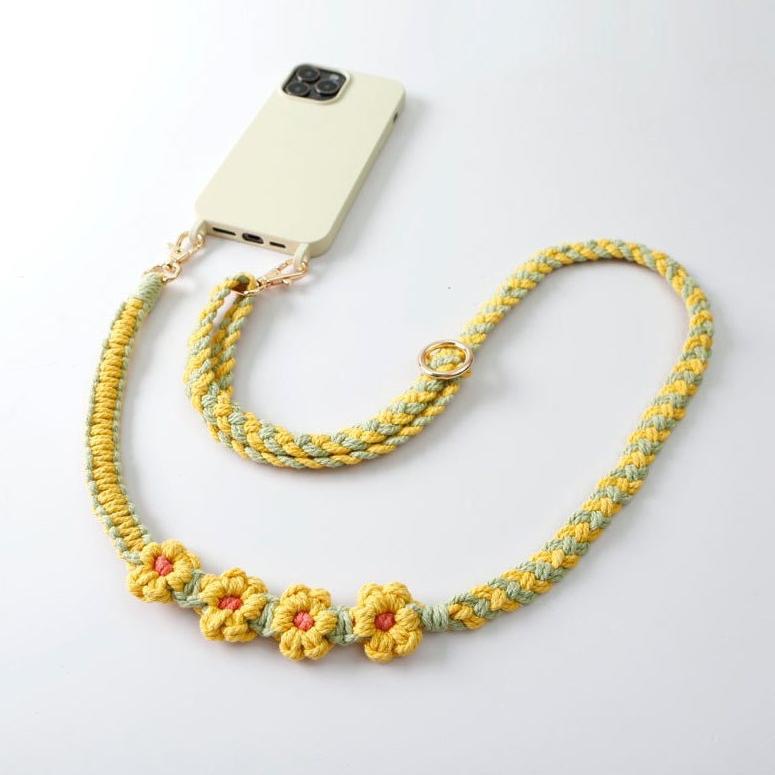 捷克手工掛繩 波西米亞手工編織手機繩 斜背可調節掛飾花朵菊花小雛菊手 機鏈 Čechy花花手工編織調節式手機背繩耳機掛繩