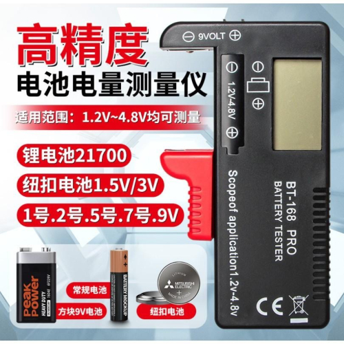 新版螢幕版 ✨✨✨ BT-168D PRO 電池檢測器✨✨✨ 用途:此商品用途為測量電池電量的殘存量,使用電子式螢幕顯示目前電池電壓狀態,體積小巧好攜帶。 功能:可測量出電池是電壓是否充足,螢幕顯示電池電力 ✨✨✨可以測電壓1.5伏特、9伏特和18650等電池✨✨✨ 可測量電池需符合上述兩種電壓,規格如下: 1、2、3、4、5號、9V方形、鈕釦水銀電池 便捷快速!只需將所要檢測的電池放入儀器中,電池容量立刻一目了然!! 隨時清楚掌握電池的狀態! 可測量1~4號1.5的電池、或方形9V的電池 讓你輕鬆量測電池電力 使用方法: 一:9V電池接在測試器的側面兩個測試孔。 二、其它1~5號的電池,請直接裝入測試器頂端的測試卡曹,將電池卡入即可測量電量,非常方便。 商品說明文內相關文字數據來自原廠提供 如有誤差以實際出貨規格為準 請注意 #指針型#通用型#電池#測試器#電量#測試#檢測器#電量顯示#電壓#電池#水銀#方型電池 -------------注意⚠️--------- 商品出貨前經過實機測試,確認沒有問題才會發貨。 商品沒試用期,外盒防偽貼紙經過拆封破壞就不提供退換貨。 請特別注意!⚠️ ★★★★★★★★★★★★★注意事項★★★★★★★★★★★★★★★★★ ※以上規格資料若有任何錯誤,以原廠所公佈資料為準。 ★本公司保留接受訂單出貨與否的權利。 ☆★請注意本商品一經拆封或使用後無法退貨☆★ 鑑賞期(非試用期)內或尚未決定是否購買前,請保持商品、包裝、配件 與贈品之完整性、請您使用刀片割開封口處、請勿破壞原廠外箱(書寫文字) ,若有贈送螢幕保護貼也請您過鑑賞期後再貼,如人為疏忽原廠無法接受消費者退換, 損壞部分皆會收取整新費用(例如:主體刮傷、原廠紙盒破損、配件與贈品不完整...等) 請消費者務必了解(法律規則)。 ☆★依消保法規定:第19條所規定之七天鑑賞期(非試用期),只允許外觀檢視鑑賞, 消費者並無使用權利。☆★ ☆★電腦軟體屬於智慧財產保護權之一,均享有相關法律之權利,因此提醒您購買 此商品時,若不確定是否使用,請勿拆開其包裝封套,拆封是同軟體已註冊使用 ,恕無法退換貨☆★★★★★★★★★★★★★