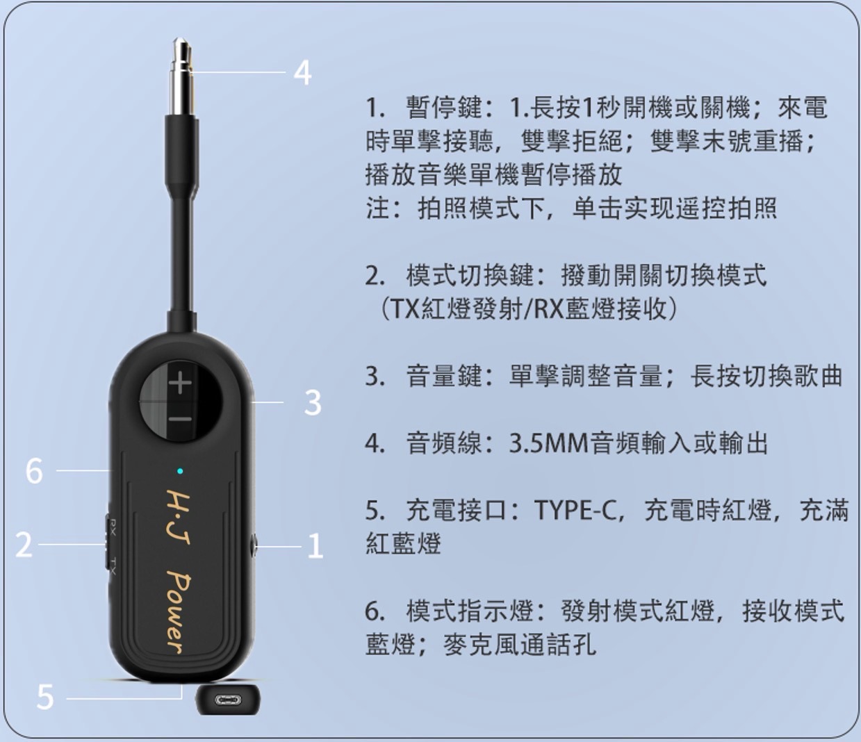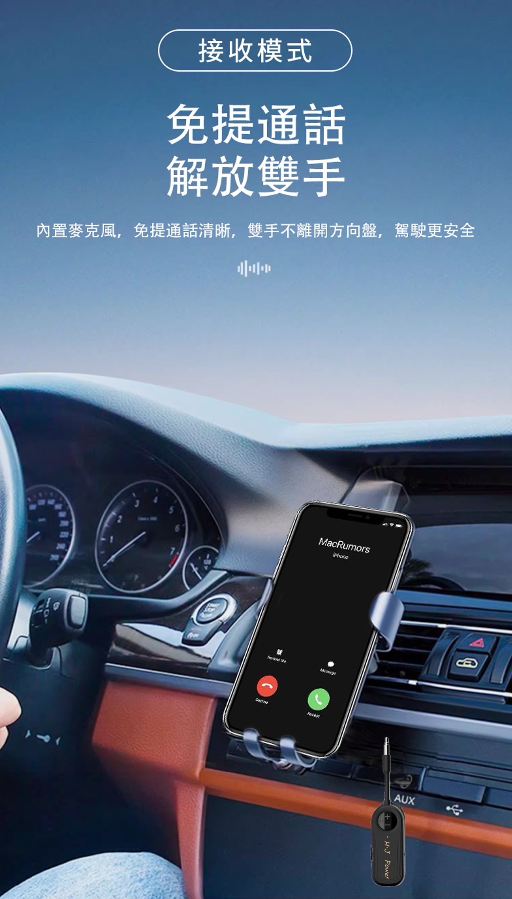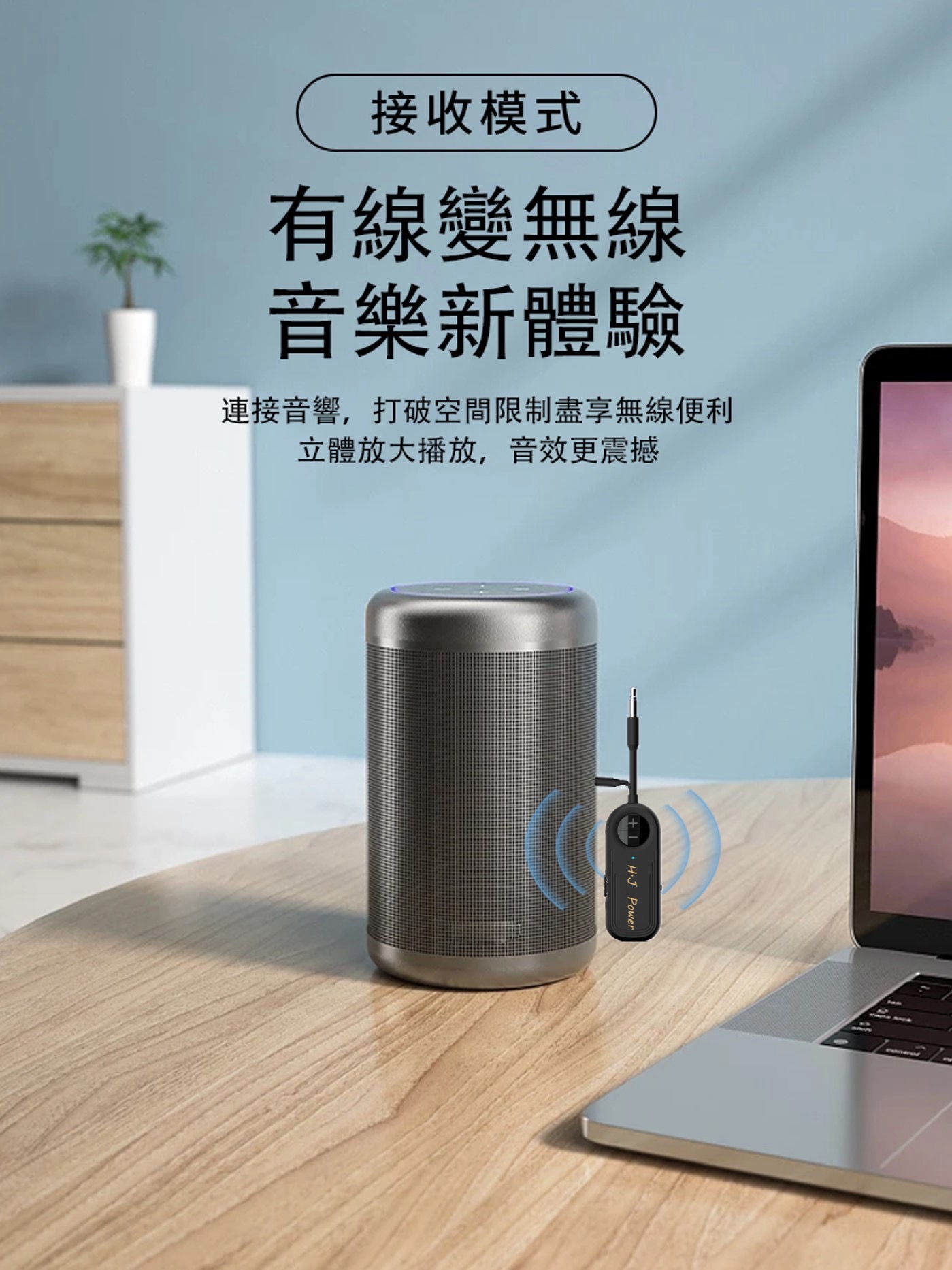一個設備可以在接收模式下接收手機的音樂並播放到音響上,也可以在發射模式下將電視的音頻信號發送到藍牙耳機。