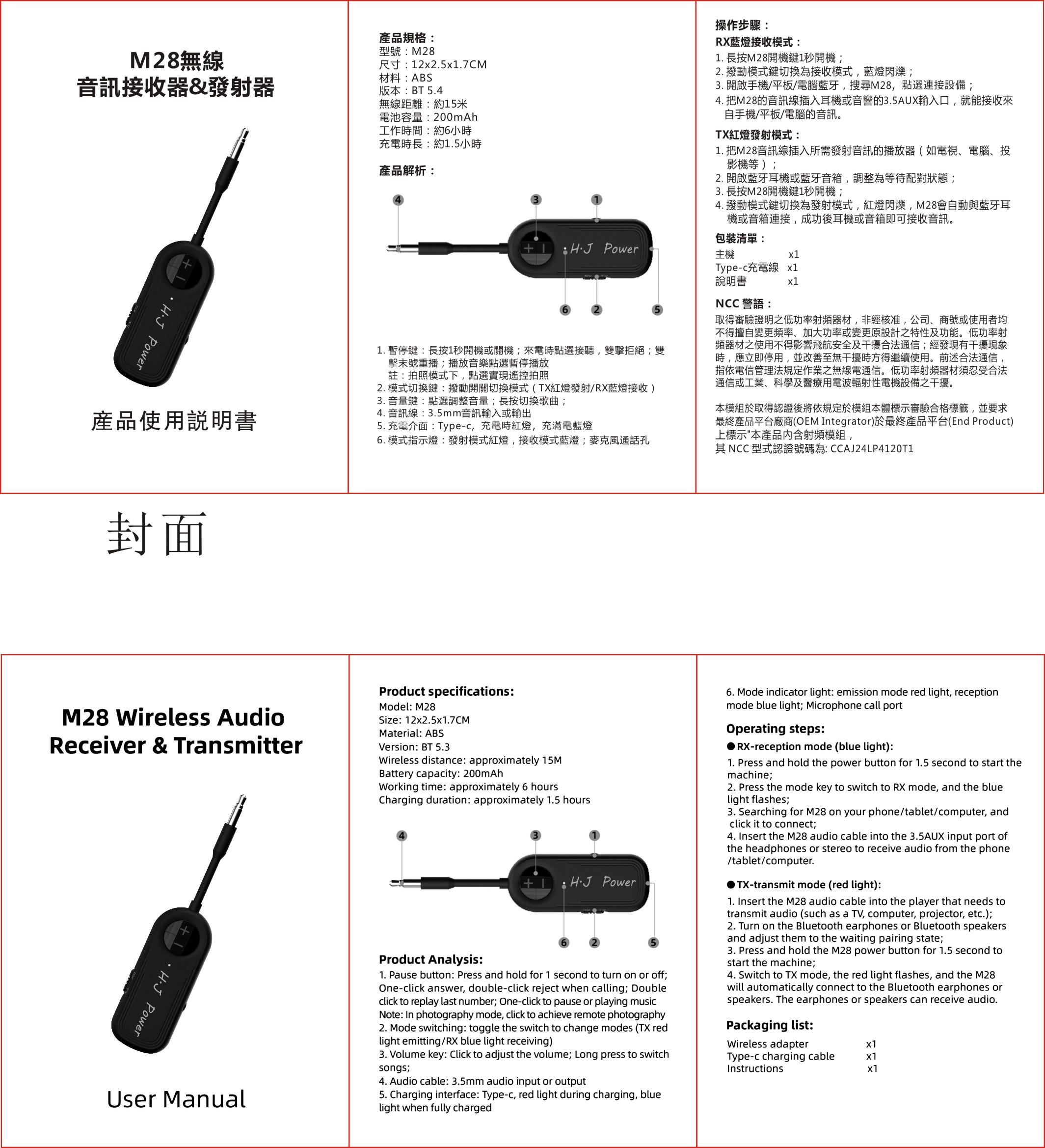 M28 無線 音訊接收器/ 藍牙發射器(主機)