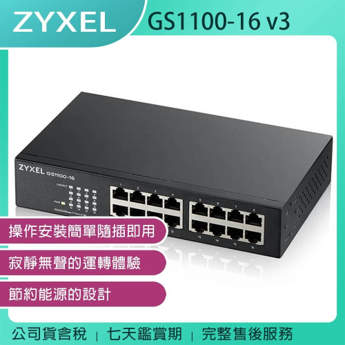 《公司貨含稅》ZYXEL 合勤 GS1100-16 v3 16埠Gigabit網路交換器