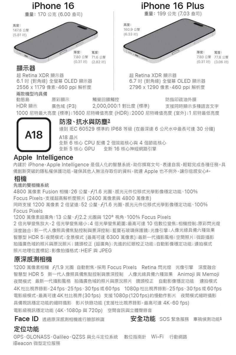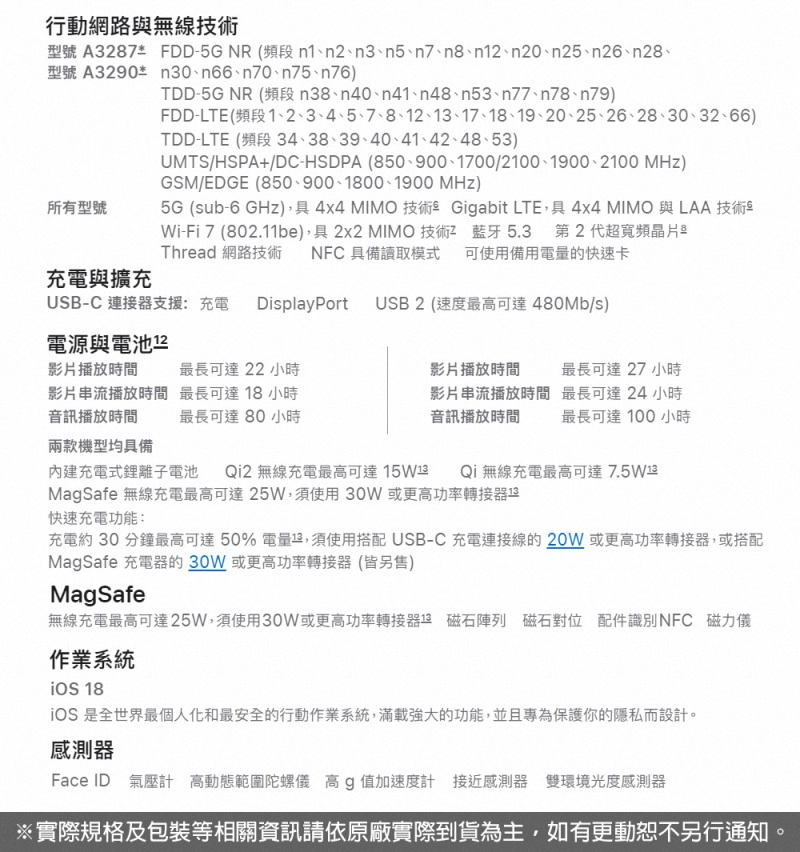 型號:iPhone 16(A3287)、iPhone 16 Plus(A3290)