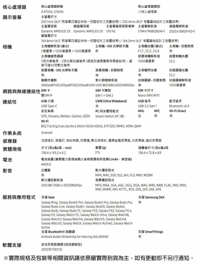 型號:Galaxy Z Fold7
