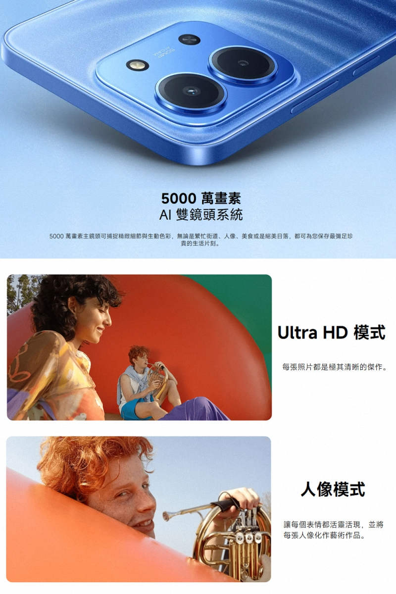 50MP AI雙鏡頭+自拍800萬畫素